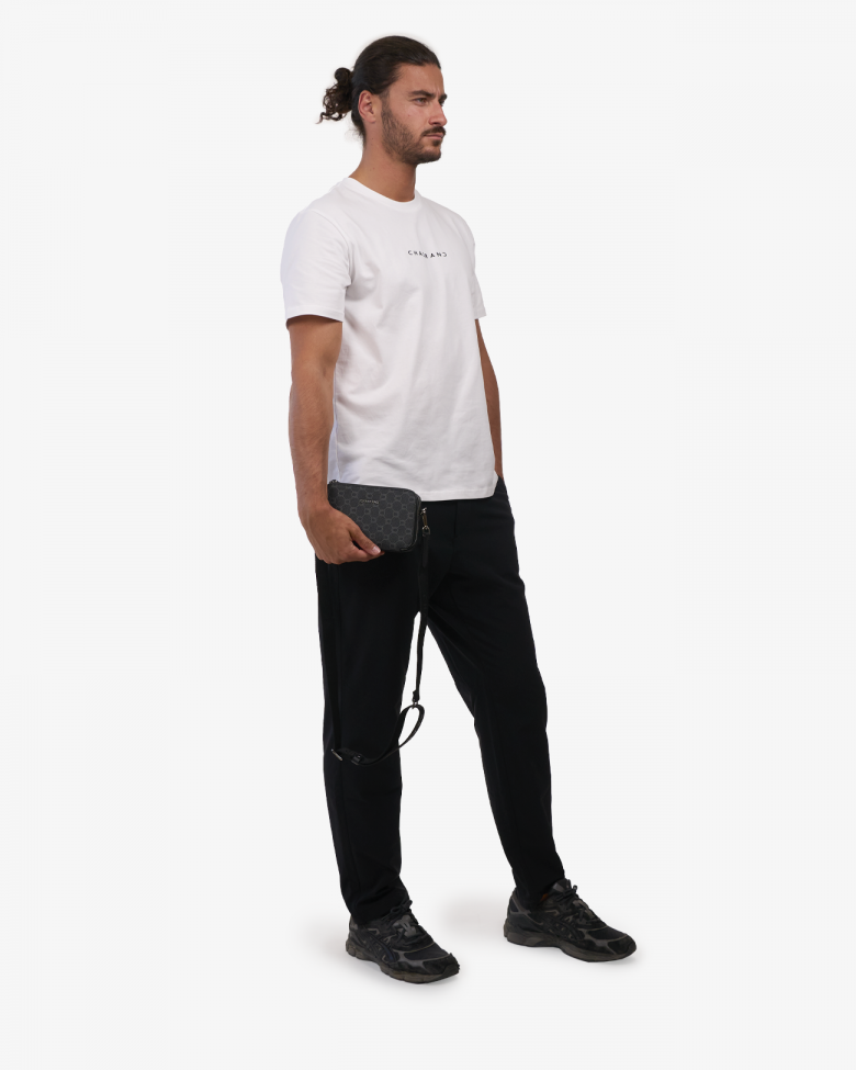 Sacoche en toile enduite siglée garnie cuir